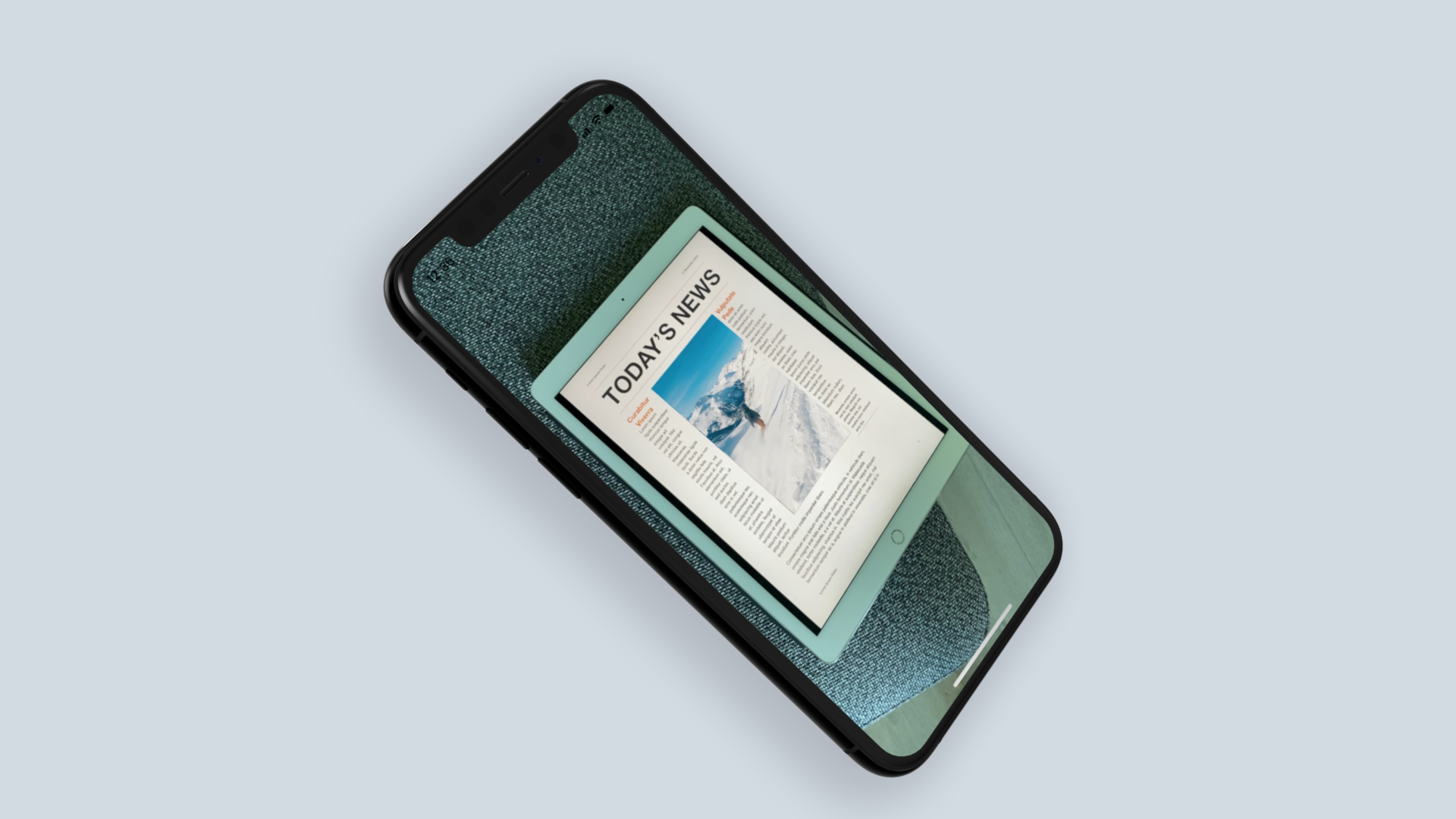 If you can't wait to try out the image tracking, you can deploy the app to your iPhone. Assuming you've printed out the PDF document, you can point the device camera at the newspaper. When the app detects the "Snowboarding" image, it automatically overlay the video player on top of the image and starts the video playback.