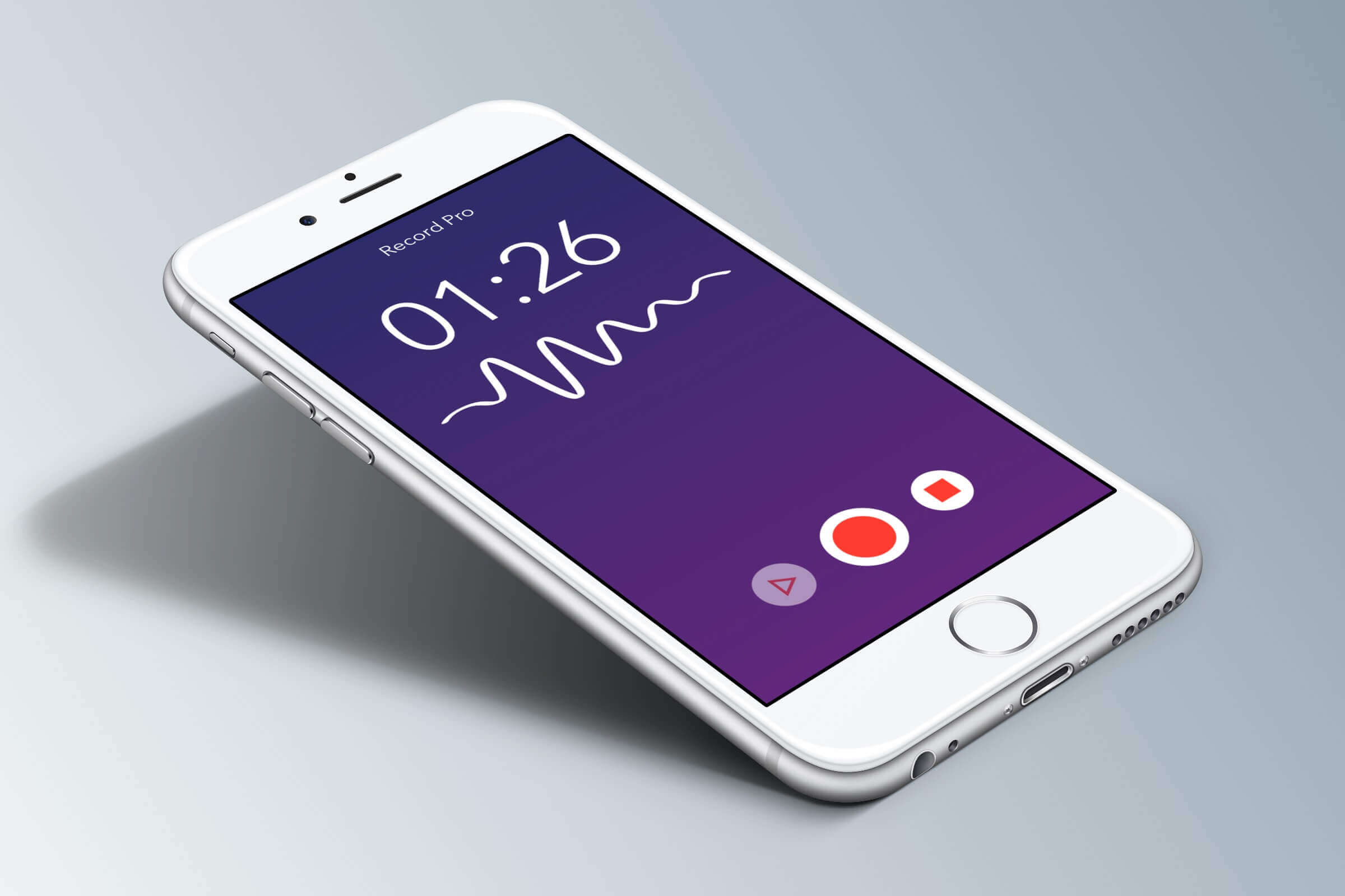 First, create an app using the Single View Application template and name it RecordPro (or any name you like). You can design a user interface like figure 10.1 on your own. However, to free you from setting up the user interface and custom classes, you can download the project template from http://www.appcoda.com/resources/swift55/RecordProStarter.zip. I've created the storyboard and custom classes for you. The user interface is very simple with three buttons: record, stop and play. It also has a timer to show the elapsed time during recording. The buttons have been connected to the corresponding action method in the RecordProController