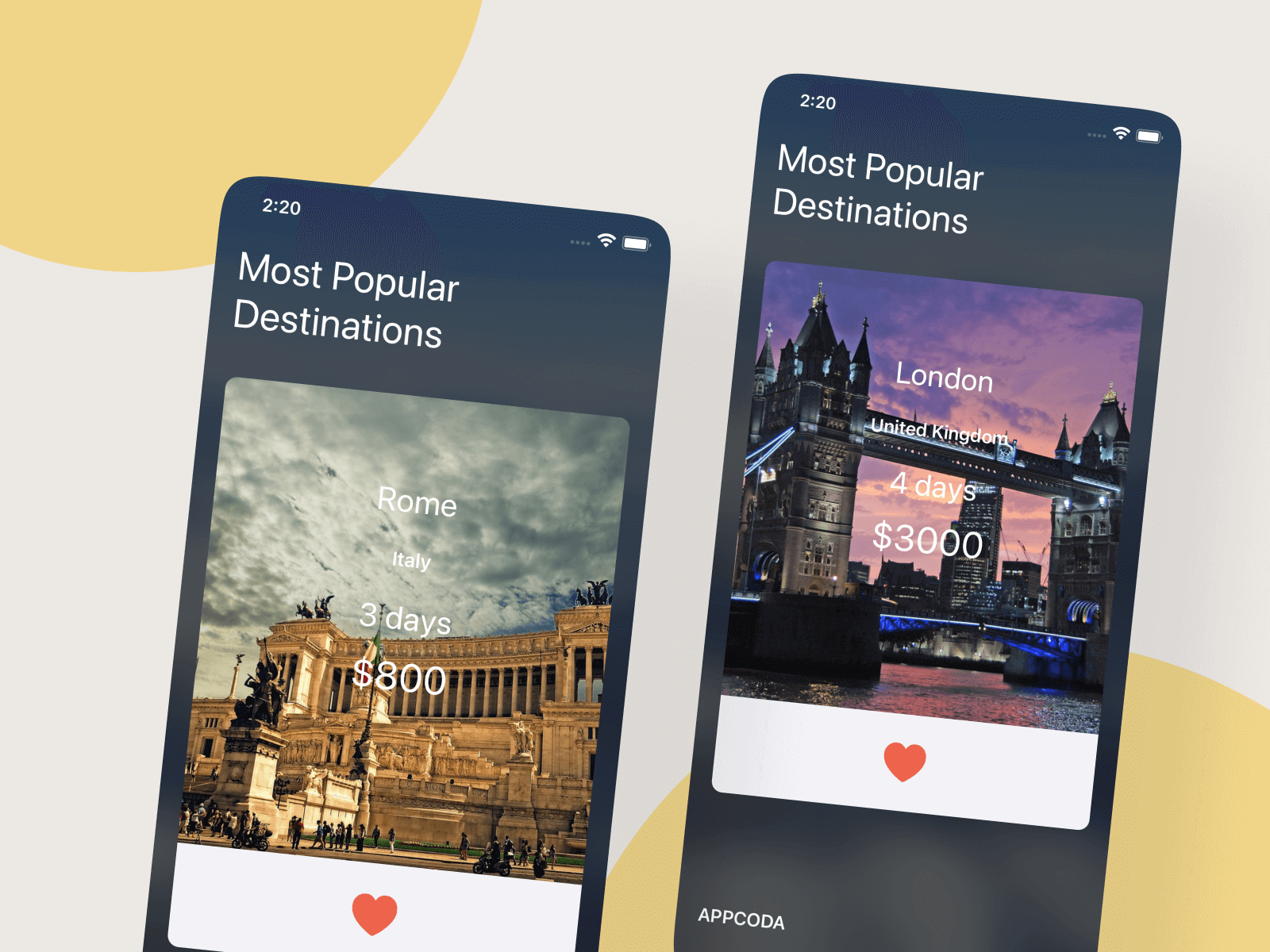 . If you do not know how to create a collection view, I recommend you take a look at chapter 18. As usual, to walk you through the feature we will build a demo app with a simple carousel that displays a list of trips.