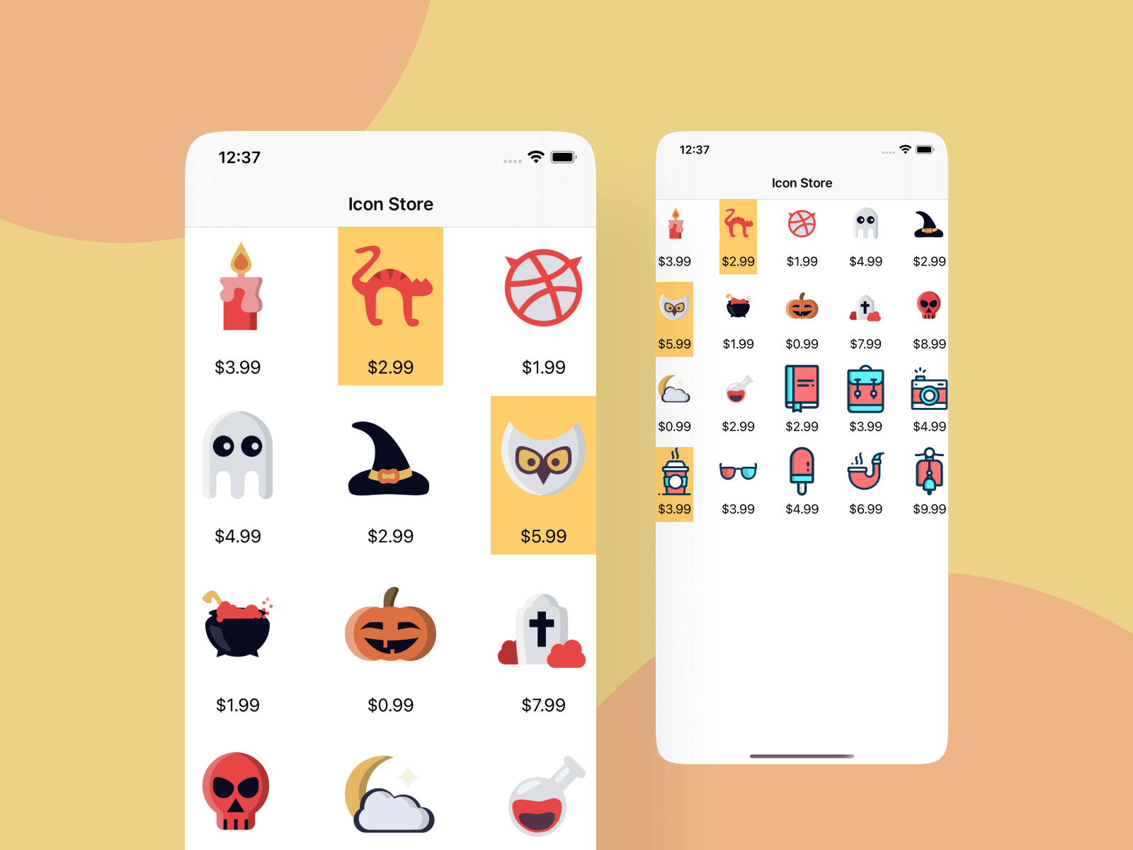 Now compile and run the app using the iPhone 13 Pro simulator. You should have a grid-based Icon Store app like this.