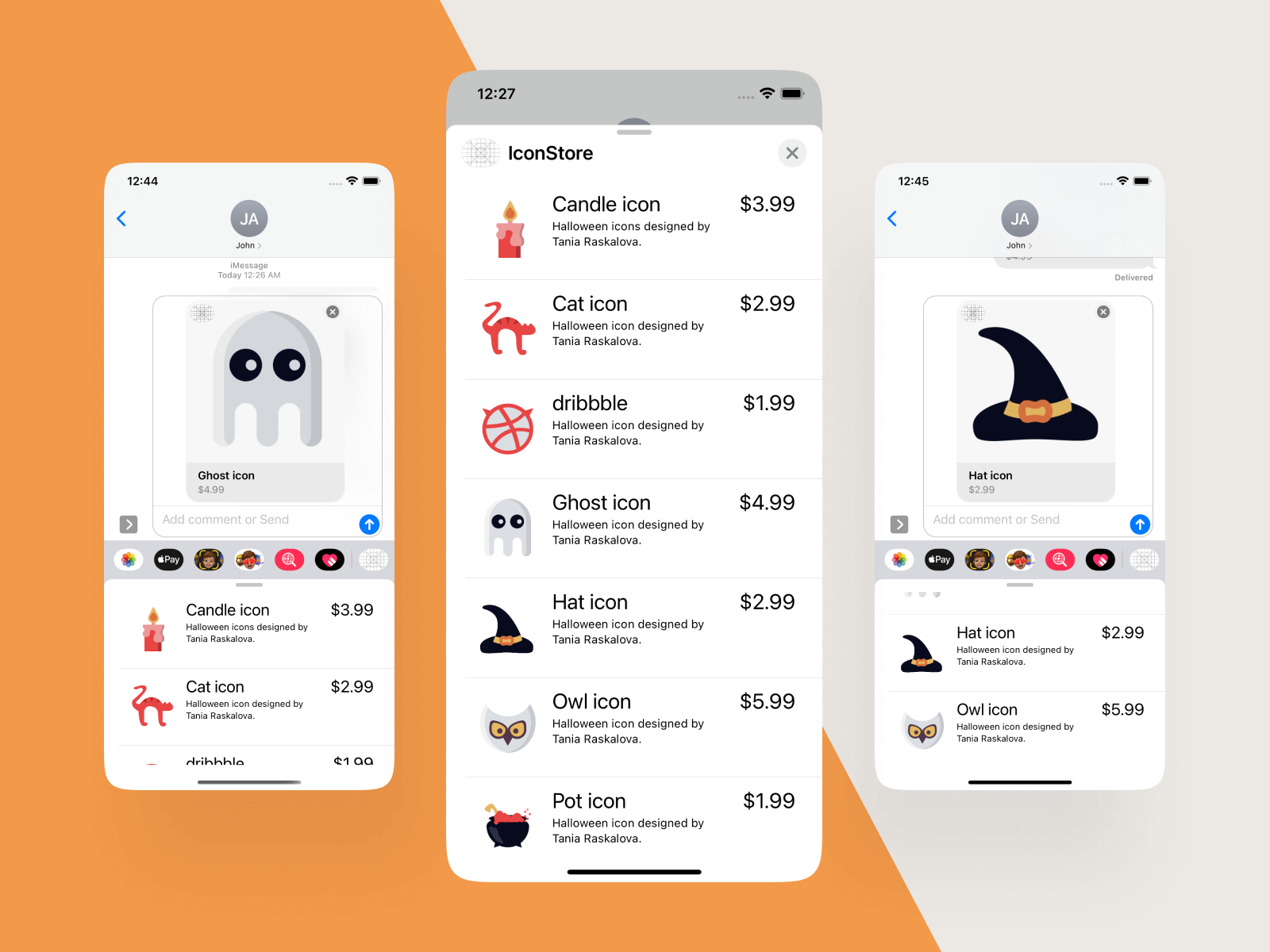 Icon(name: "Hat icon", imageName: "hat", description: "Halloween icon designed by Tania Raskalova.", price: 2.99, isFeatured: false),