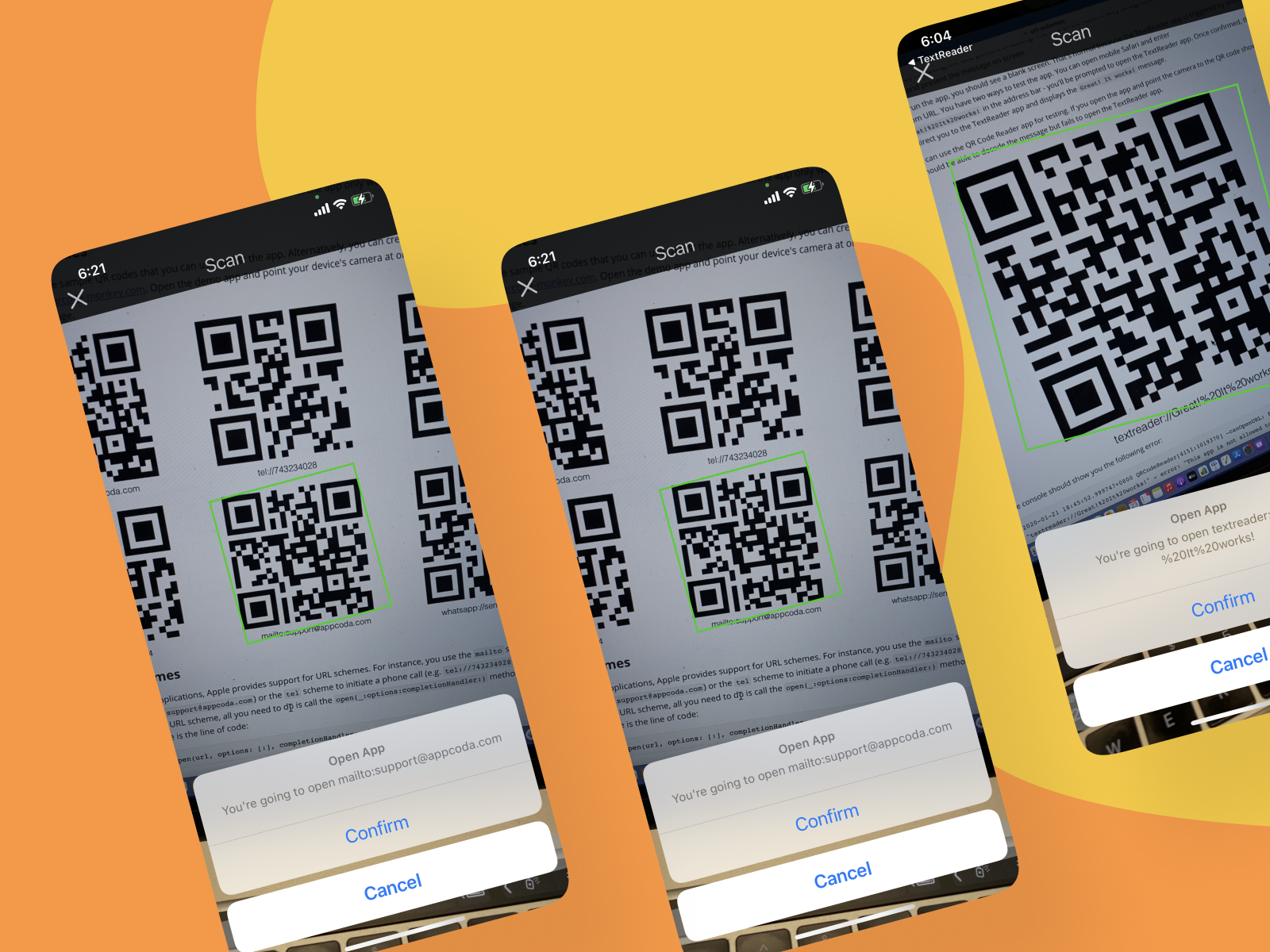 Once you've made the change, test the QR Reader app again. Point to a QR code with a custom URL scheme (e.g. textreader). The app should be able to launch the corresponding app.